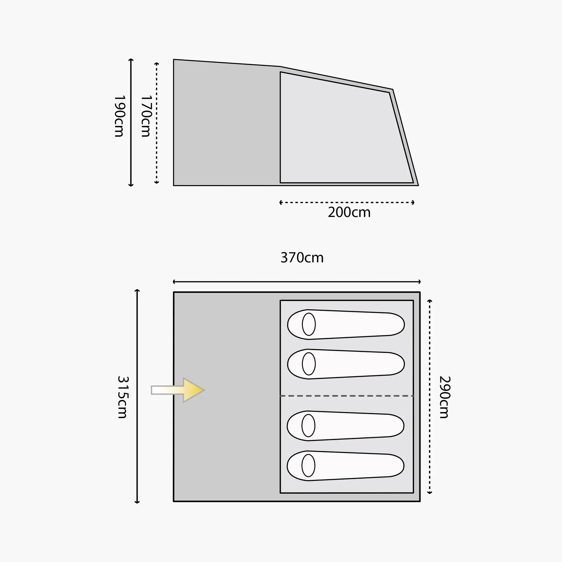 - Outer: 370 x 315 x 180cm