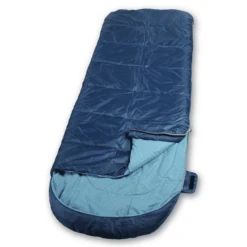 The Outdoor Revolution Camp Star Single 300 Sleeping Bag – Blue is a great 2 to 3 season sleeping bag which is ideal to use from late spring time all the way through to early autumn. Featuring a clever square shape, this sleeping bag from Outdoor Revolution provides a more spacious foot box than a mummy style sleeping bag. It also includes an extra zip along the bottom, for increased air flow during the hotter months. Made from high quality and durable materials, this sleeping bag is a must have for any outdoor adventure!