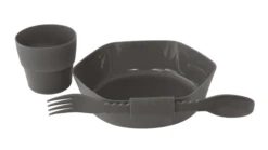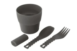The Robens Leaf Meal Kit – Anthracite Grey is a great cooking and dining set which is ideal to stash in your backpack for your next outdoor adventure. Included within this kit from Robens are a bowl, lid, spoon, fork, cup, connector and elastic band to secure the set together. The eco-friendly bamboo lid cleverly doubles as a handy chopping board and colander, making cooking outdoors a breeze! The connector allows you to connect the fork and spoon and can be extended for use in three different lengths! Not only this, but the cup folds down and can be stored inside the bowl alongside all of the other items for effortless transportation.